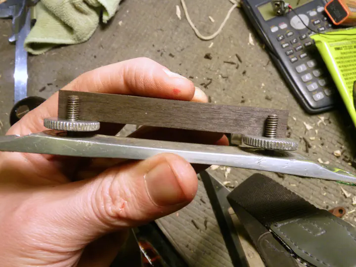 Дальше на нем работать неудобно: на свободном участке лента прогибается и не дает плоскости, а упор слишком широкий, чтобы им лезть в углубления. Задумался о еще более тонкой ленте :-) Вообще, гриндер - это тема, конечно. В миллион раз лучше точила.