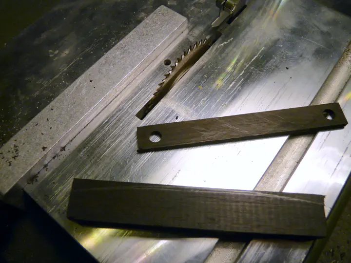 Делать бридж я буду из т.н. “макассара” - это такое черное дерево (macassar ebony). Характерно оно рыжеватыми прожилками, большим количеством пор и малой склонностью к растрескиванию. Это очень жесткая и плотная древесина, аж в воде тонет.