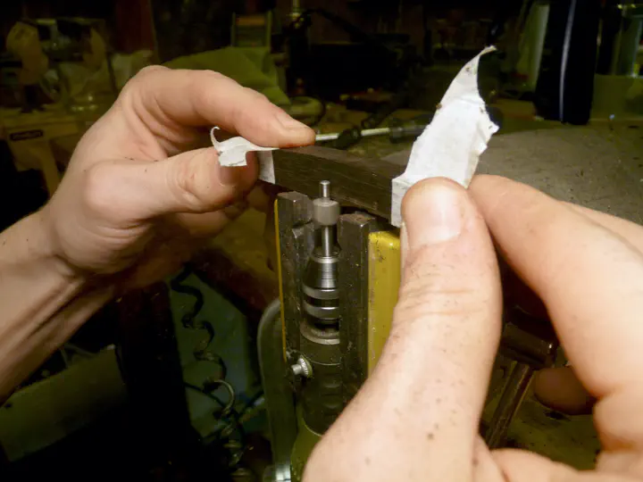Интересно, а что будет, если подобным образом проапгрейдить пластиковый верхний порожек? Делается-то за десять минут, а получается почти полноценная замена латунному порожку в плане долговечности. Очевидно, сверлить надо как можно ближе к переднему краю (где мензура начинается). При случае попробую.