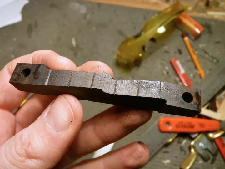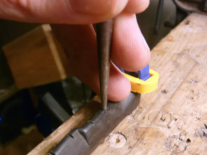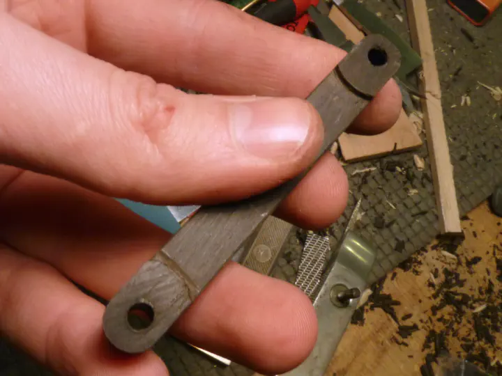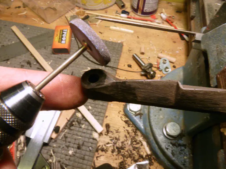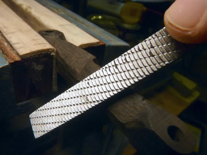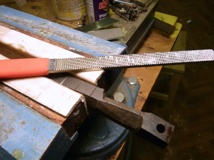Дальше работаю напильником (на фото, правда, razor file - специальный напильник по дереву с очень острой и крупной насечкой, но то же самое можно было делать и простым слесарным).