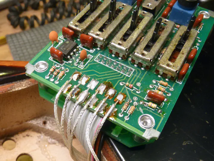 Выпаиваю провода пьезы. Тут главное — запомнить, какой куда шел; проверять распиновку тринадцатиконтактного разъема лично мне нечем.