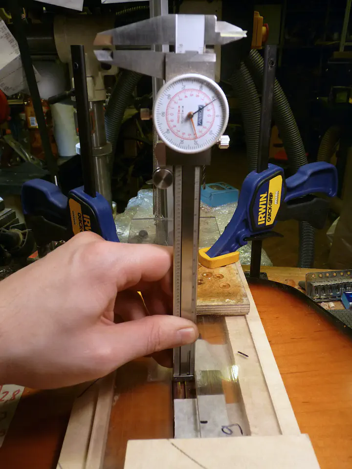 Глубину паза, слава богу, можно измерять без снятия шаблона: хвост штангеля впритык пролезает в отверстие.
