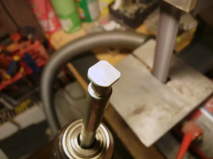 Как сделать аккуратный кружок из квадрата, учитывая, что материал очень твердый и колкий? Токарной обработкой, конечно же. Правда, соответствующего станка у меня нет, поэтому я суперклеем сажаю заготовку на стержень подходящего диаметра и цепляю его в шуруповерт: