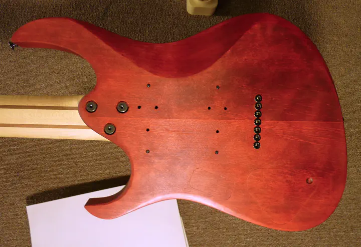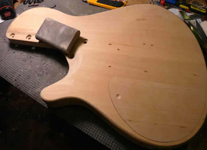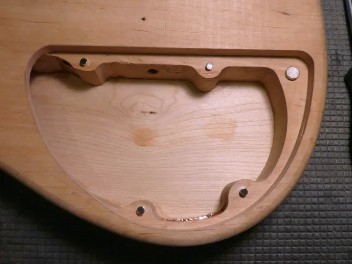 После того, как корпус был отфрезерован, окантован и более-менее подрезан во всех острых местах, а бридж переделан заново, настало время заняться звукоснимателями и задней крышкой.