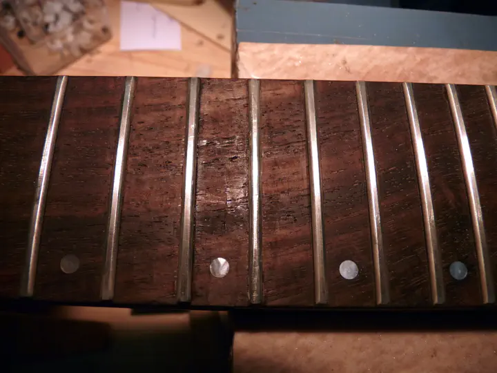 Вот как это выглядит на грифе после небольшой шлифовки: