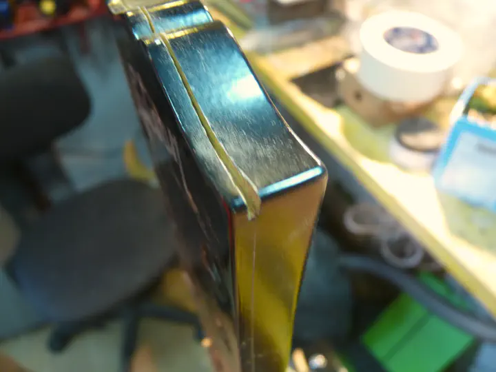 Шлифую дальше, вижу линию склейки: