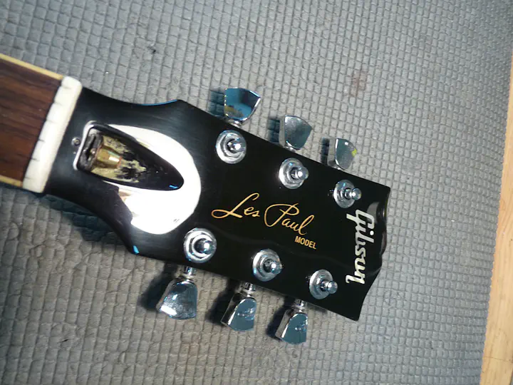 Приклеить мощную пластину спереди или сзади (см. отчет Форда, где тот делает оба варианта сразу). У гибсона, к сожалению, спереди фибра и логотипы, а сзади - серийник. Будь у меня переводилки с логотипами, можно было бы еще подумать. А так - не вариант.
