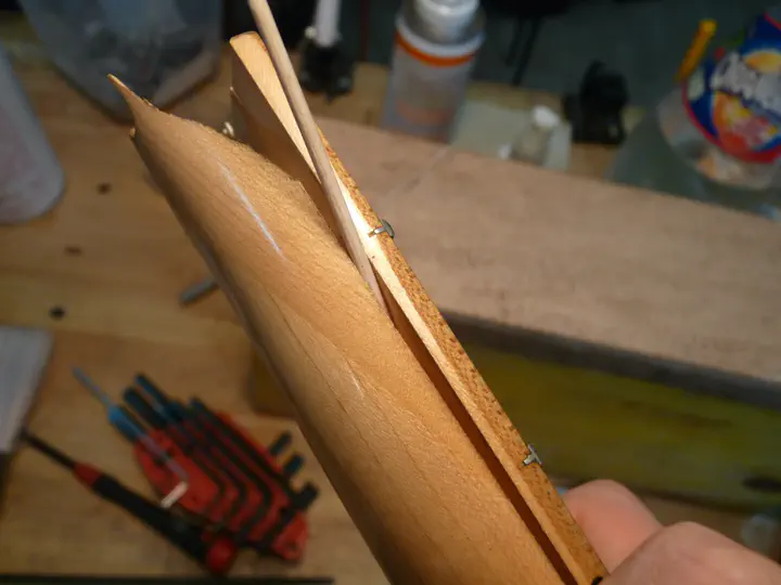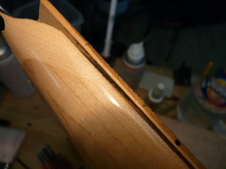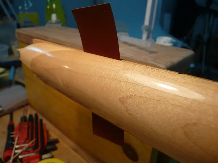 На следующий день я снимаю струбцины и изоленту и начинаю осторожно циклевать остатки эпоксидки.