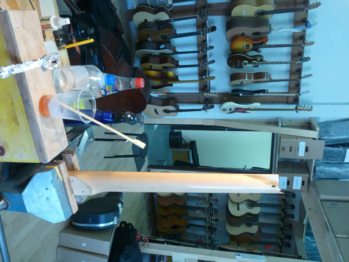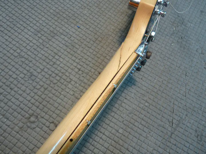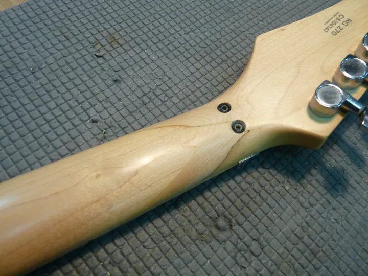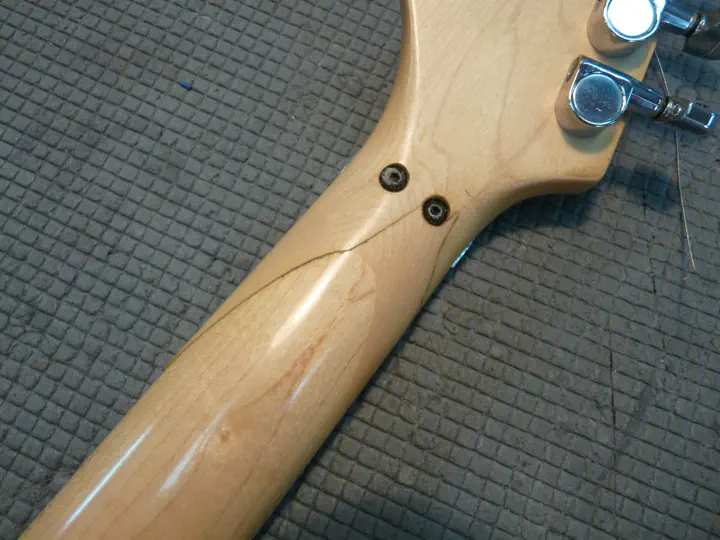 Логично предположить, что голова грифа держится исключительно на натяжении струн. И действительно: стоило их снять, и башка выскользнула из остального грифа, как из ножен.