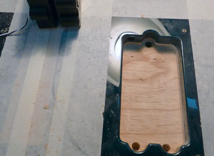 Шаблонов на каждый сингл не напасешься, поэтому я работаю вручную на фрезерном столе, а потом довожу отверстие шкуркой и надфилями.