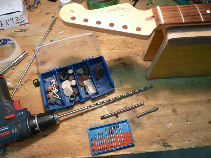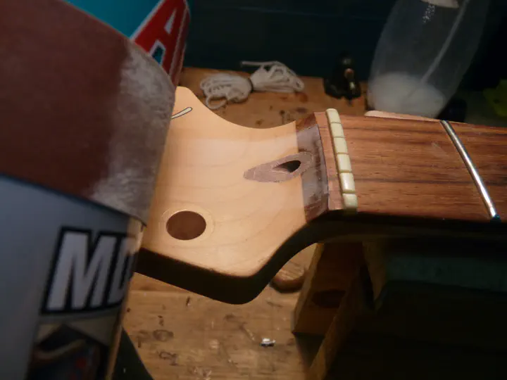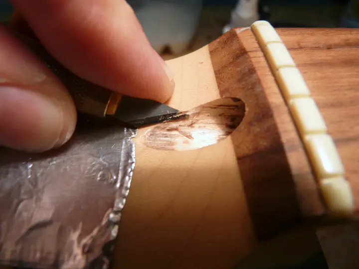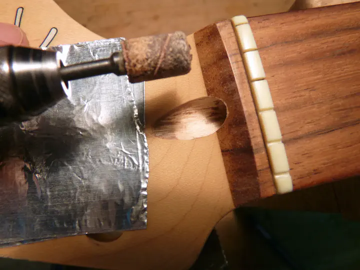 Не возбраняется пользоваться и бор-машиной, но это довольно рискованно - одно неверное движение и внешний вид головы грифа безнадежно испорчен.