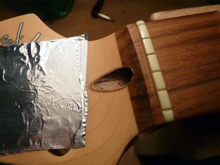 А что же подгонка под бифлекс? Как упрется гайка, какой длины должна быть заглушка? Этот конкретный гриф в нейтральном положении был настолько сильно прогнут в сторону струн, что обратный ход анкера ему не нужен. Так что я не парился вообще.