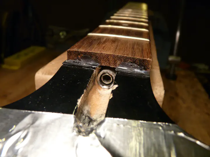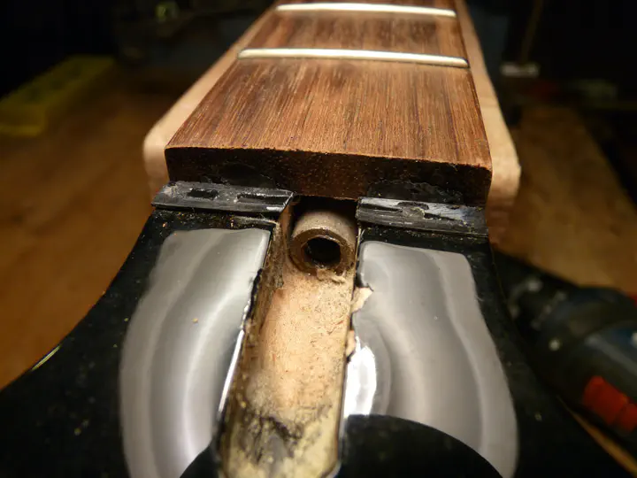 Итак, вон тот красивый джексон принесли на замену ладов, но оказалось, что придется заодно разобраться и с сорванной анкерной гайкой.