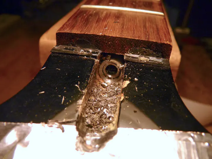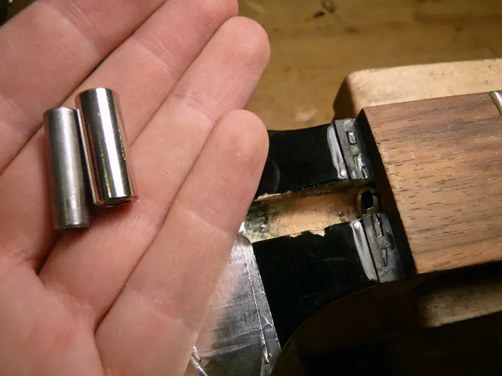 Чтобы убедиться в том, что в гитаре установлен именно такой анкер, можно поставить маркером или шилом отметку на внешнем ободе торчащего из грифа цилиндра. Если цилиндр - это гайка, то при регулировке анкера метка сдвинется. Втулка же остается неподвижной.