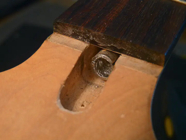 Хорошо еще, что анкер на этой гитаре односторонний: поврежденную гайку можно открутить и заменить, не трогая остальной анкер. Стало быть, проблема только в том, как это сделать.