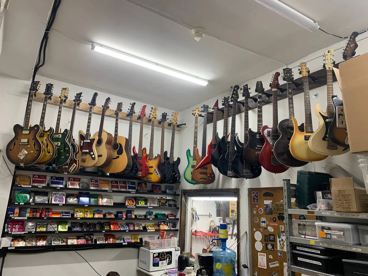 Большой выбор струн, запчастей и расходников: множество деталей в наличии, от анкерных гаек #8-28 до янтарных ручек на гибсон. Если нужного не найдется, закажем или изготовим сами.